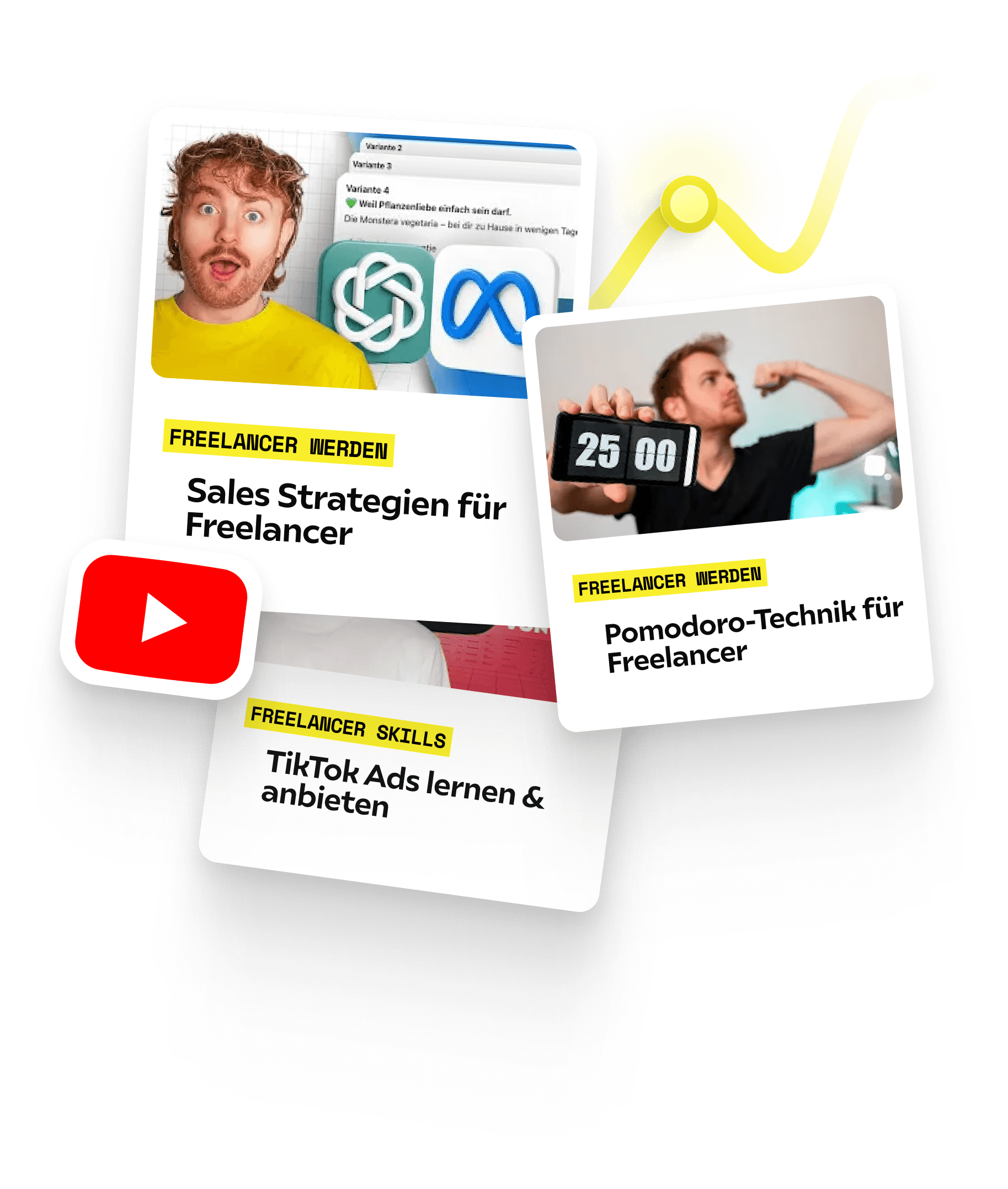Auf meinem YouTube Kanal findest du Videos, um als Freelancer durchzustarten. Ich helfe dir dabei, die ersten Schritte in der Selbstständigkeit zu machen.